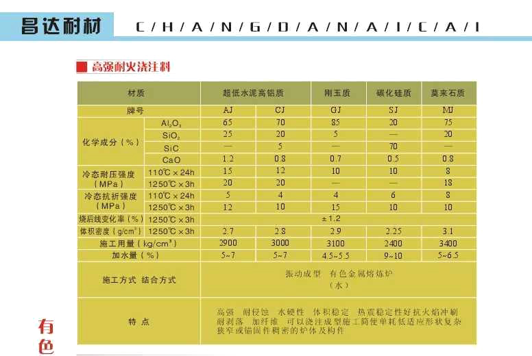 鞏義市昌達耐火材料有限公司多年來廣泛服務于冶金.建材.陶瓷.水泥.化工等行業(yè),本公司產(chǎn)品經(jīng)久耐用,負責三包,始終以用戶第-,質(zhì)量第-,信譽為宗旨. 我公司的主要產(chǎn)品有:耐火澆注料系列,耐火搗打料系列,耐火可塑料系列,耐火磚系列等各種工業(yè)爐窯用耐火材料。
